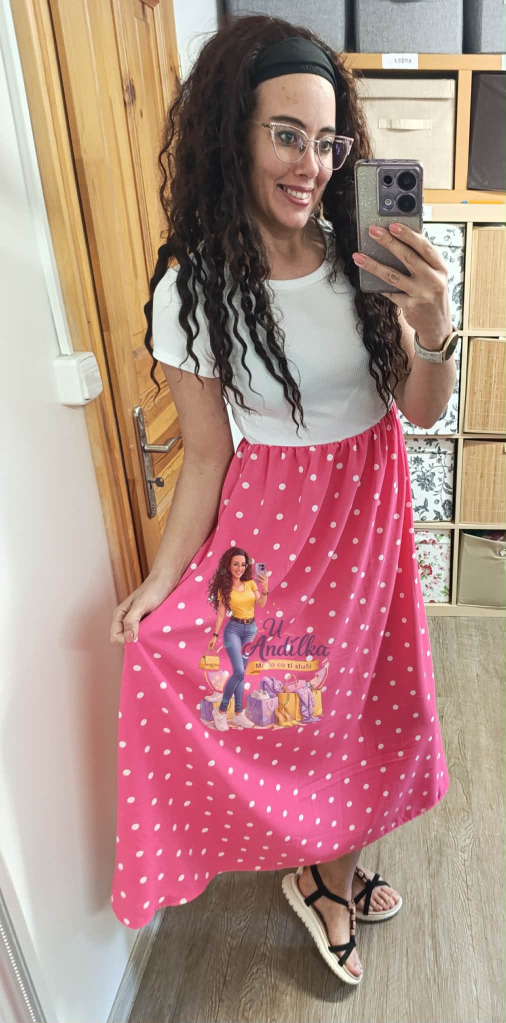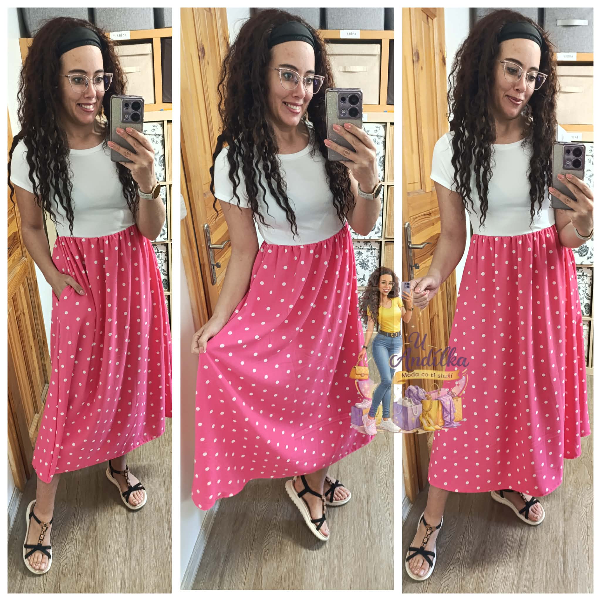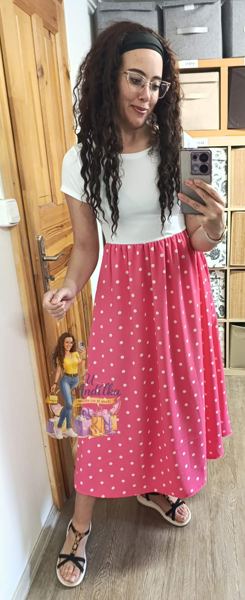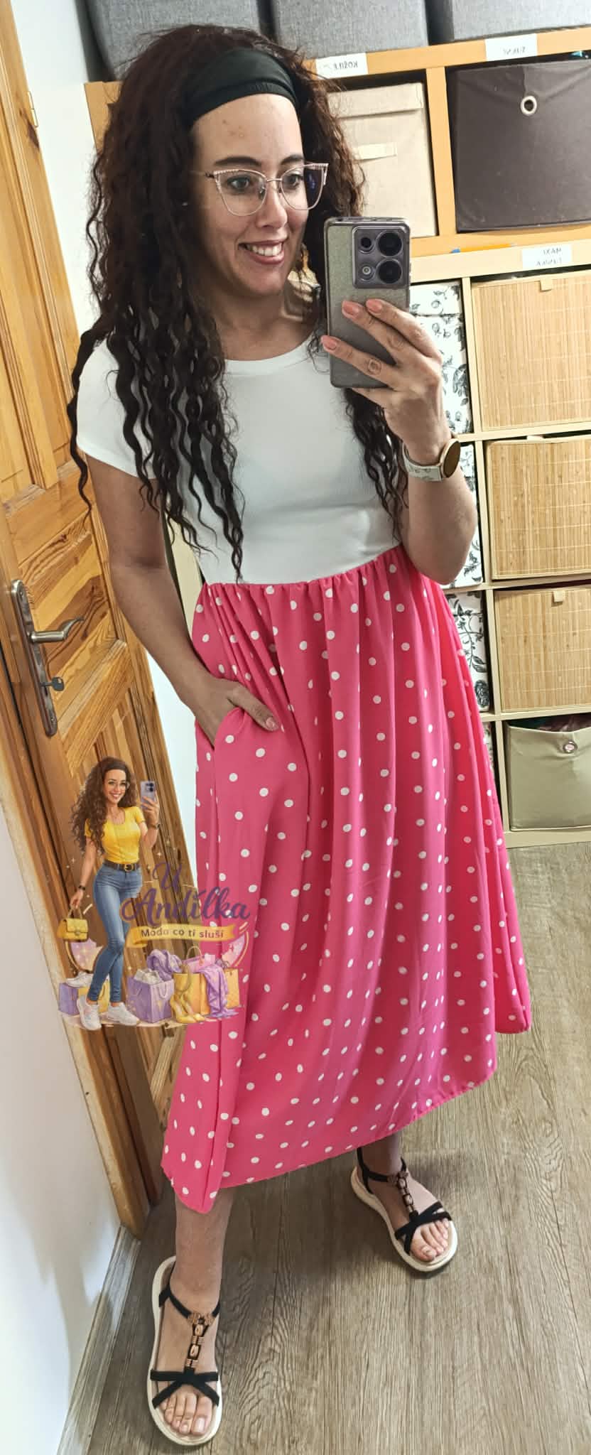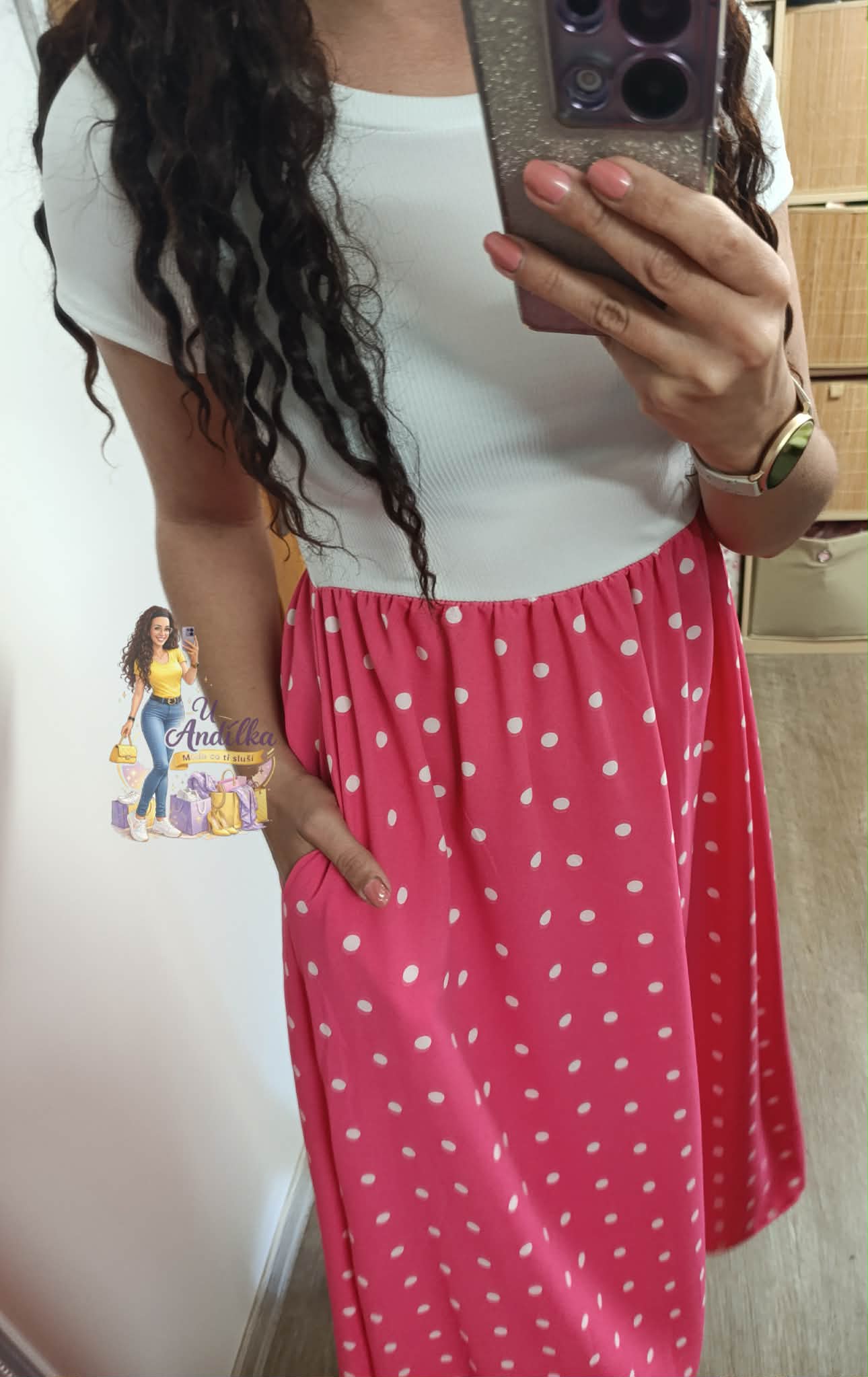 Krásné šaty s puntíky, vršek pružný, spodek s kapsami