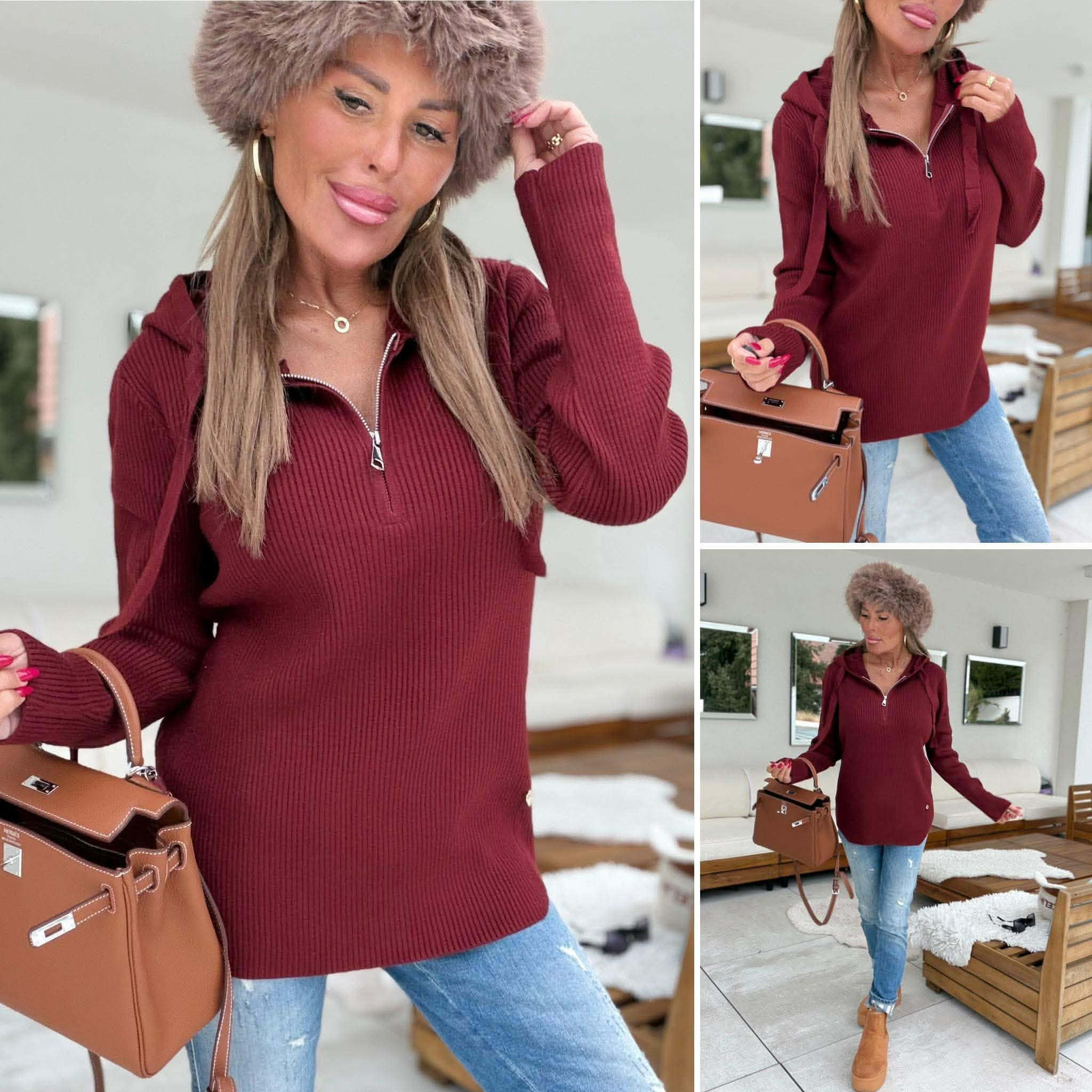 Luxusní svetr na zip ve výstřihu