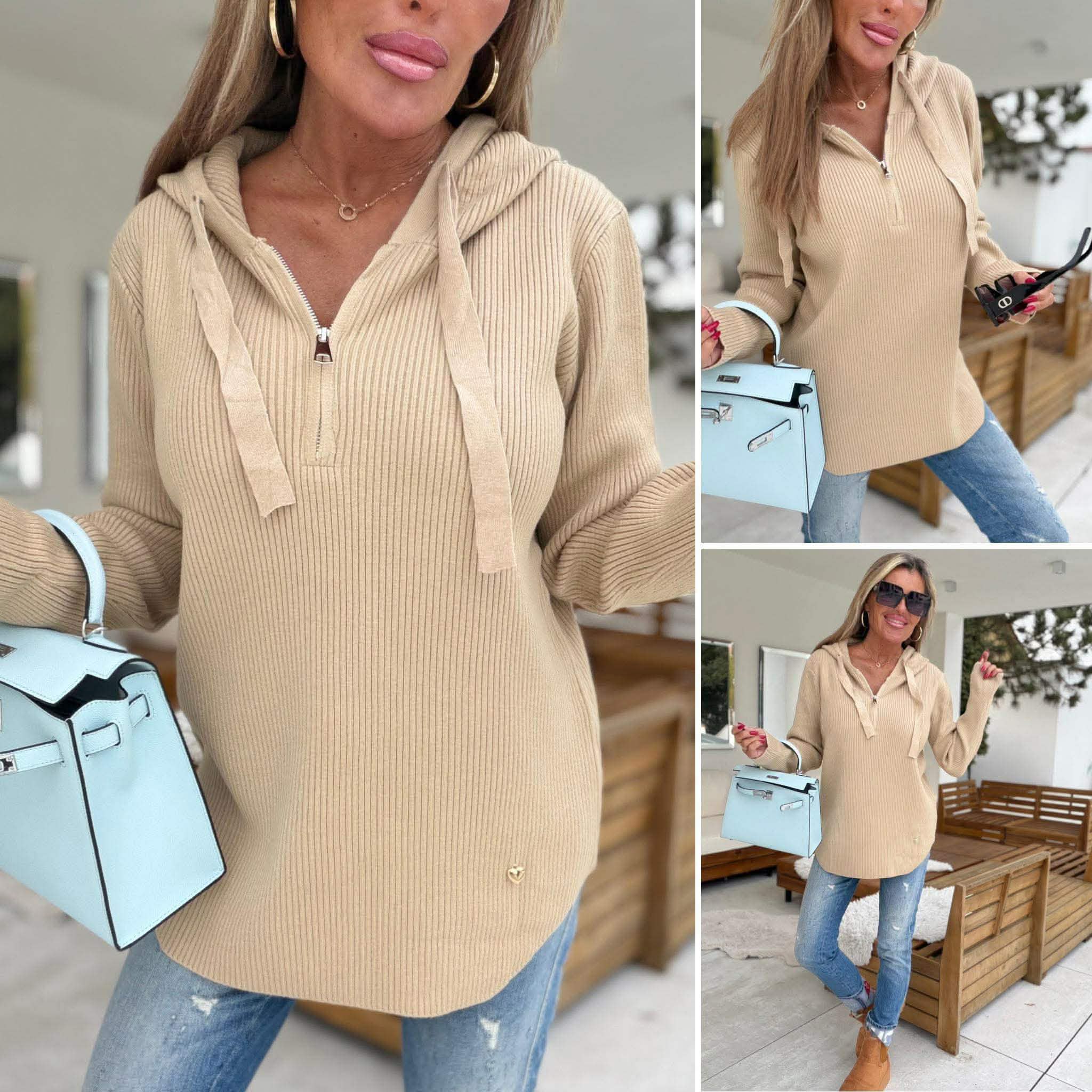 Luxusní svetr na zip ve výstřihu