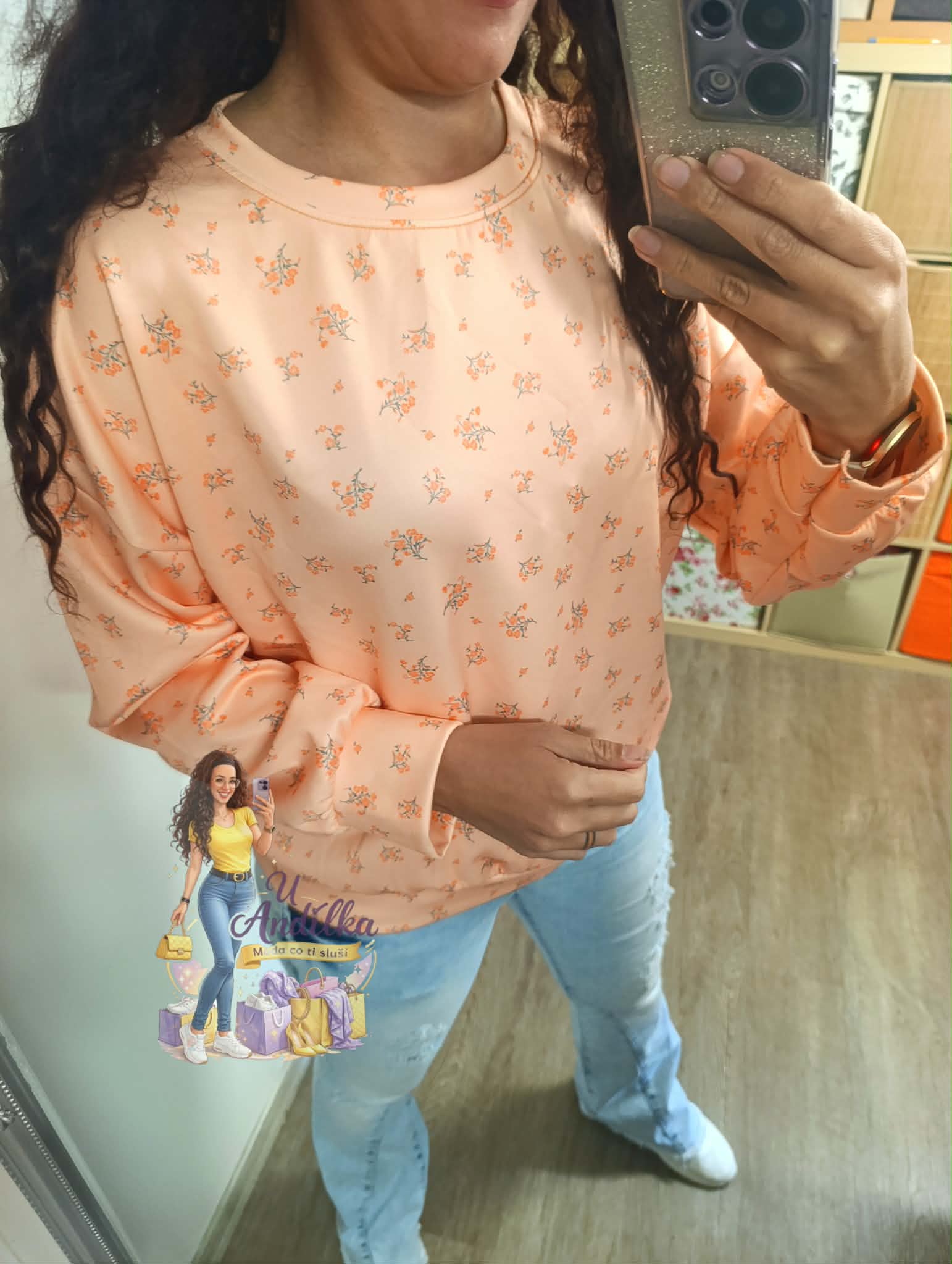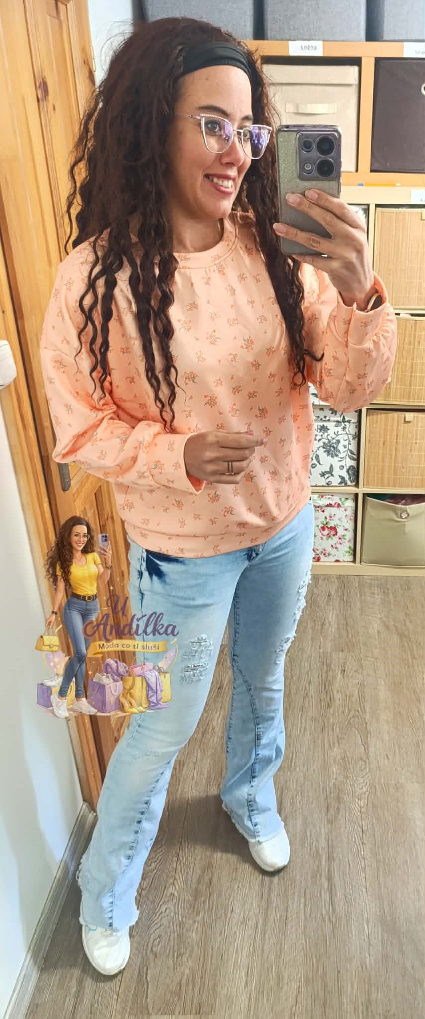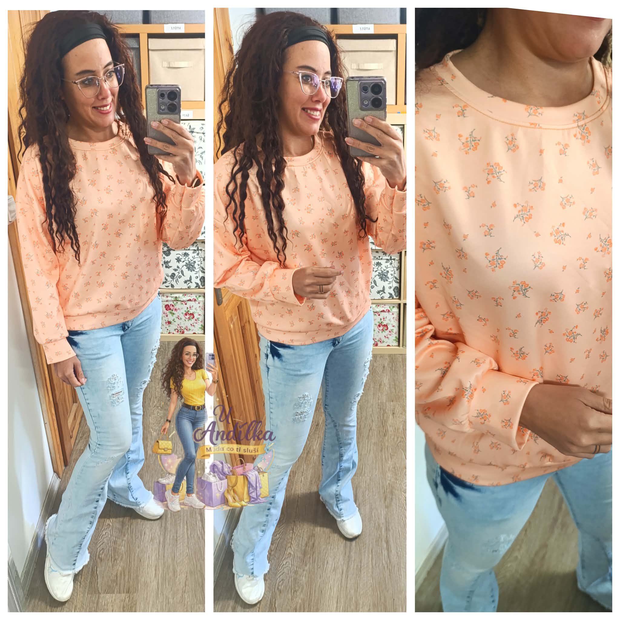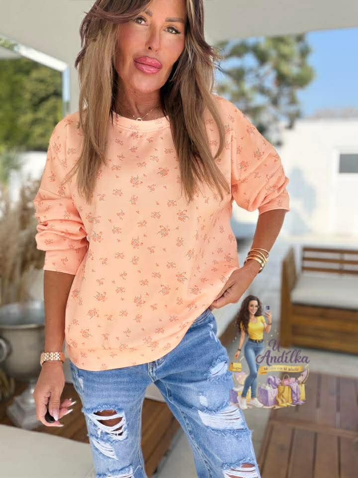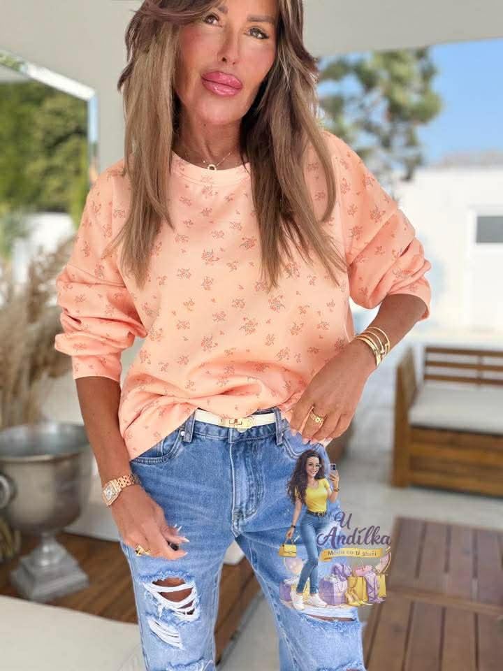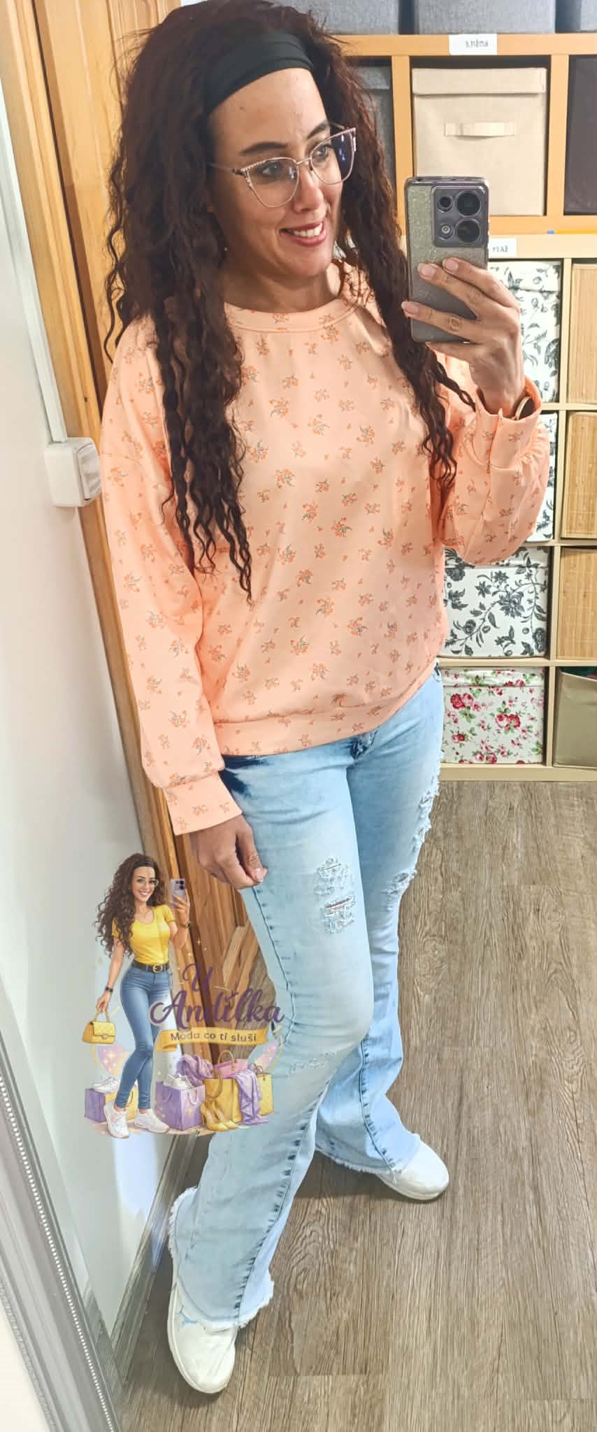 Limitka - hebounká “ máslová “ mikina květinky Vel.UNI ( M-XL ) délka 62cm, prsa 62-65cm x2