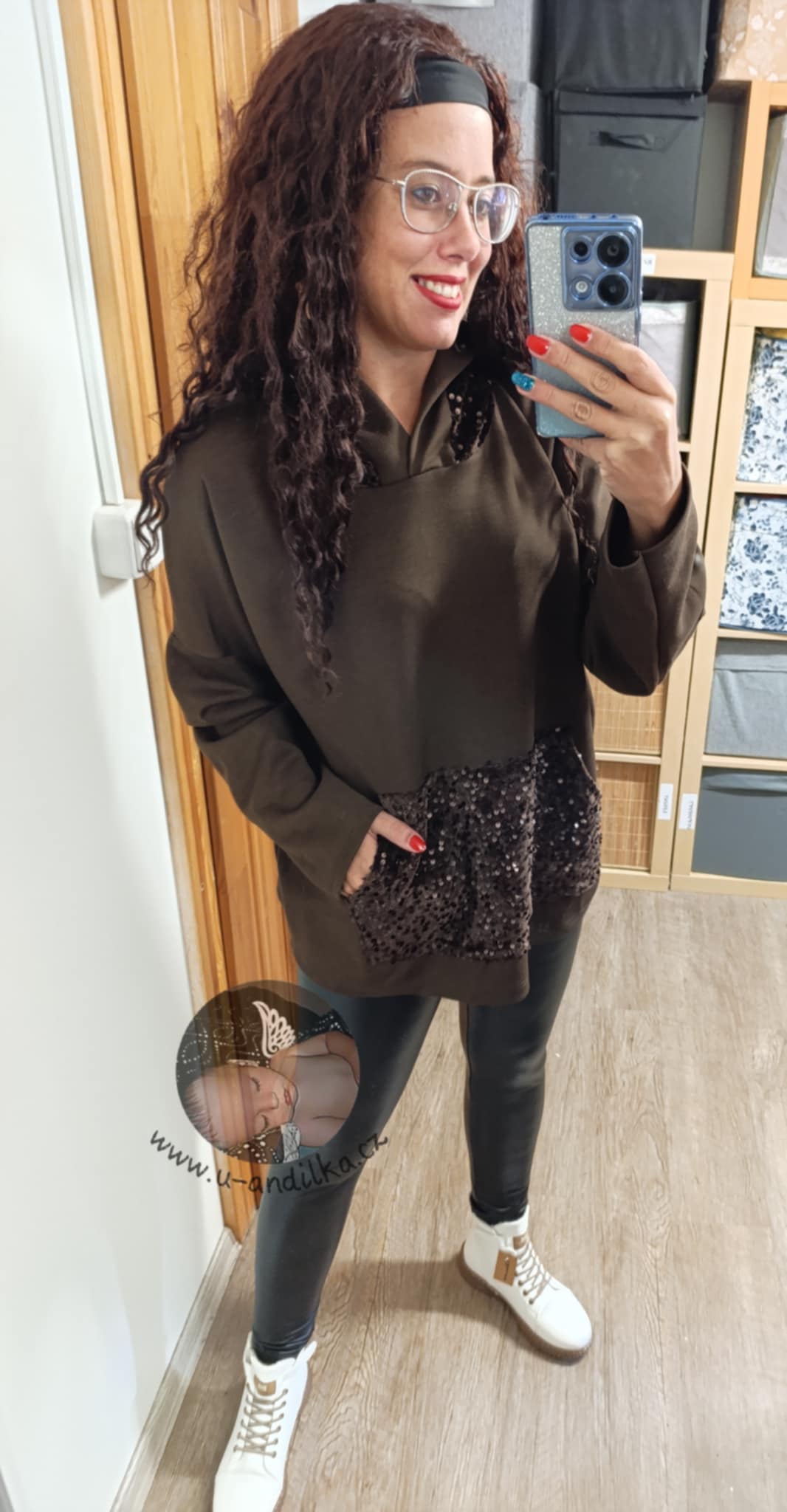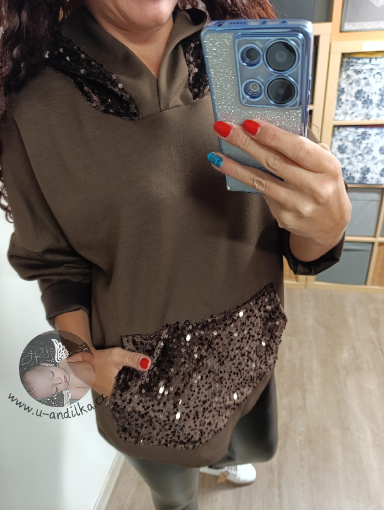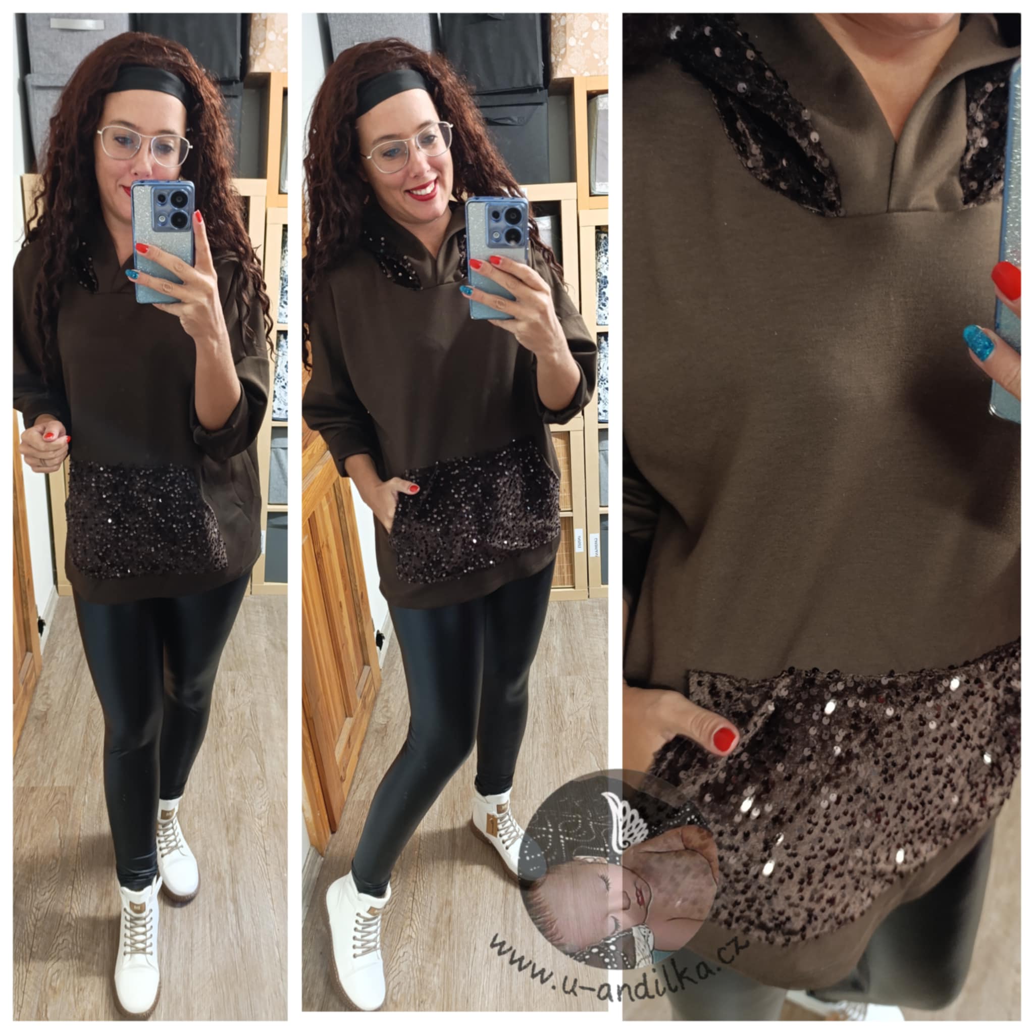 Velice příjemná, pružná, s flitry na kapse klokance i na kapuci