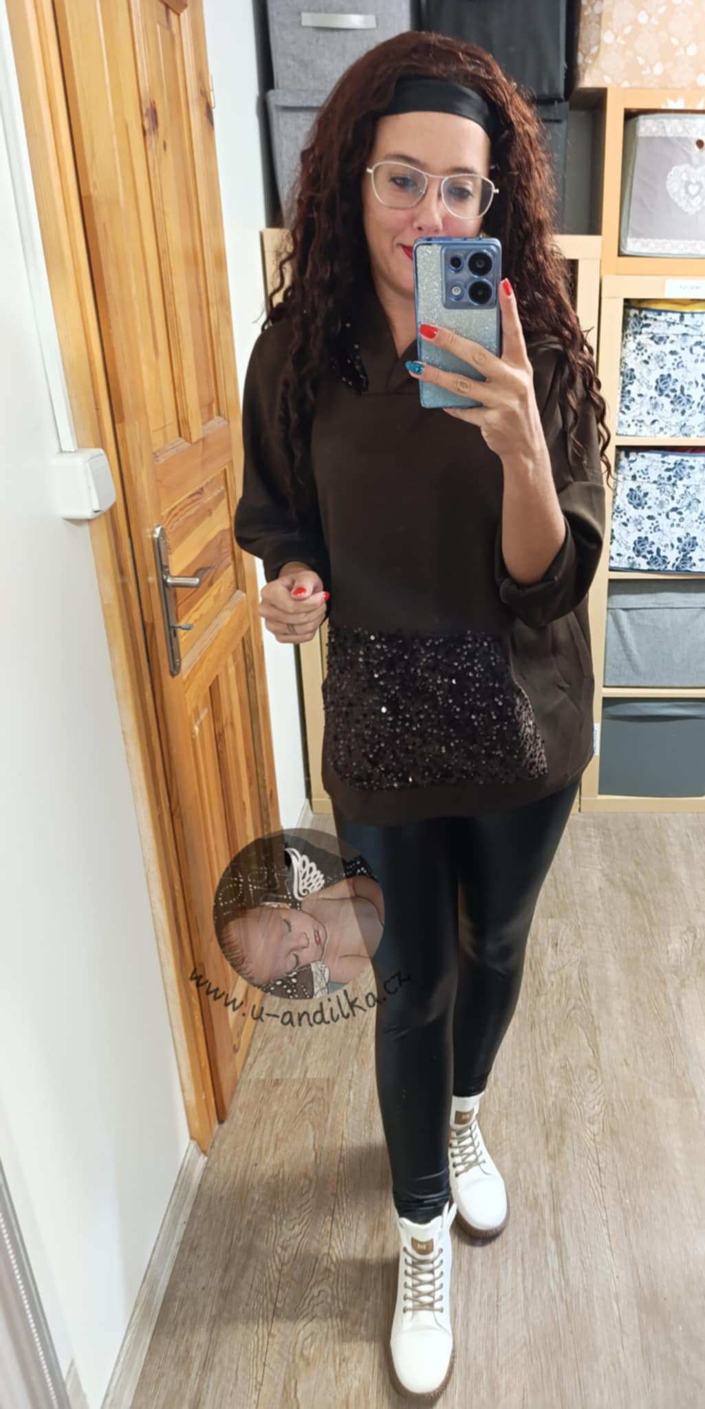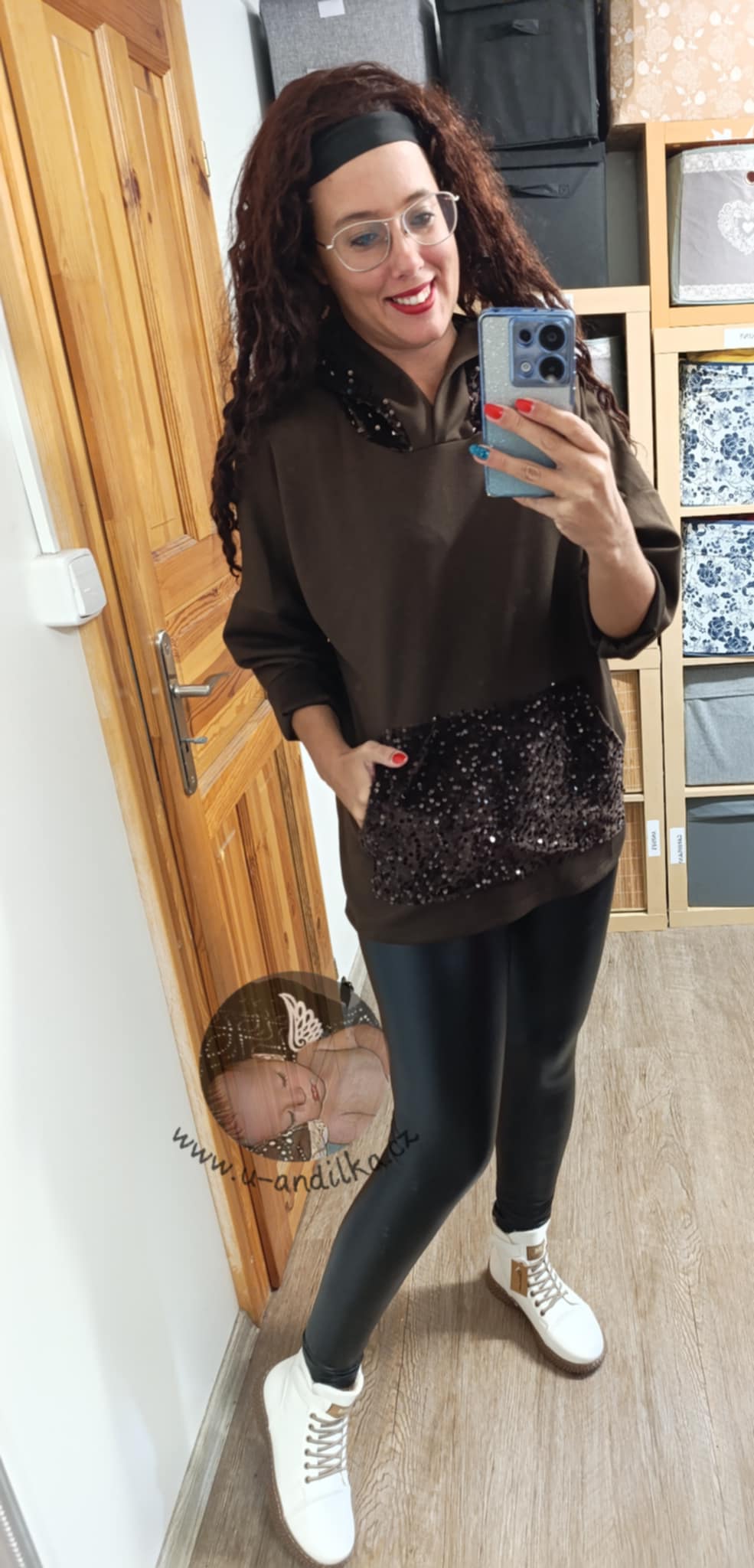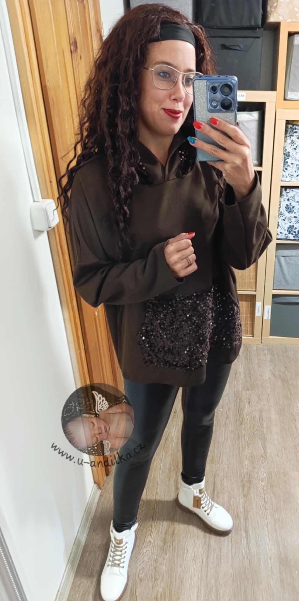 Velice příjemná, pružná, s flitry na kapse klokance i na kapuci