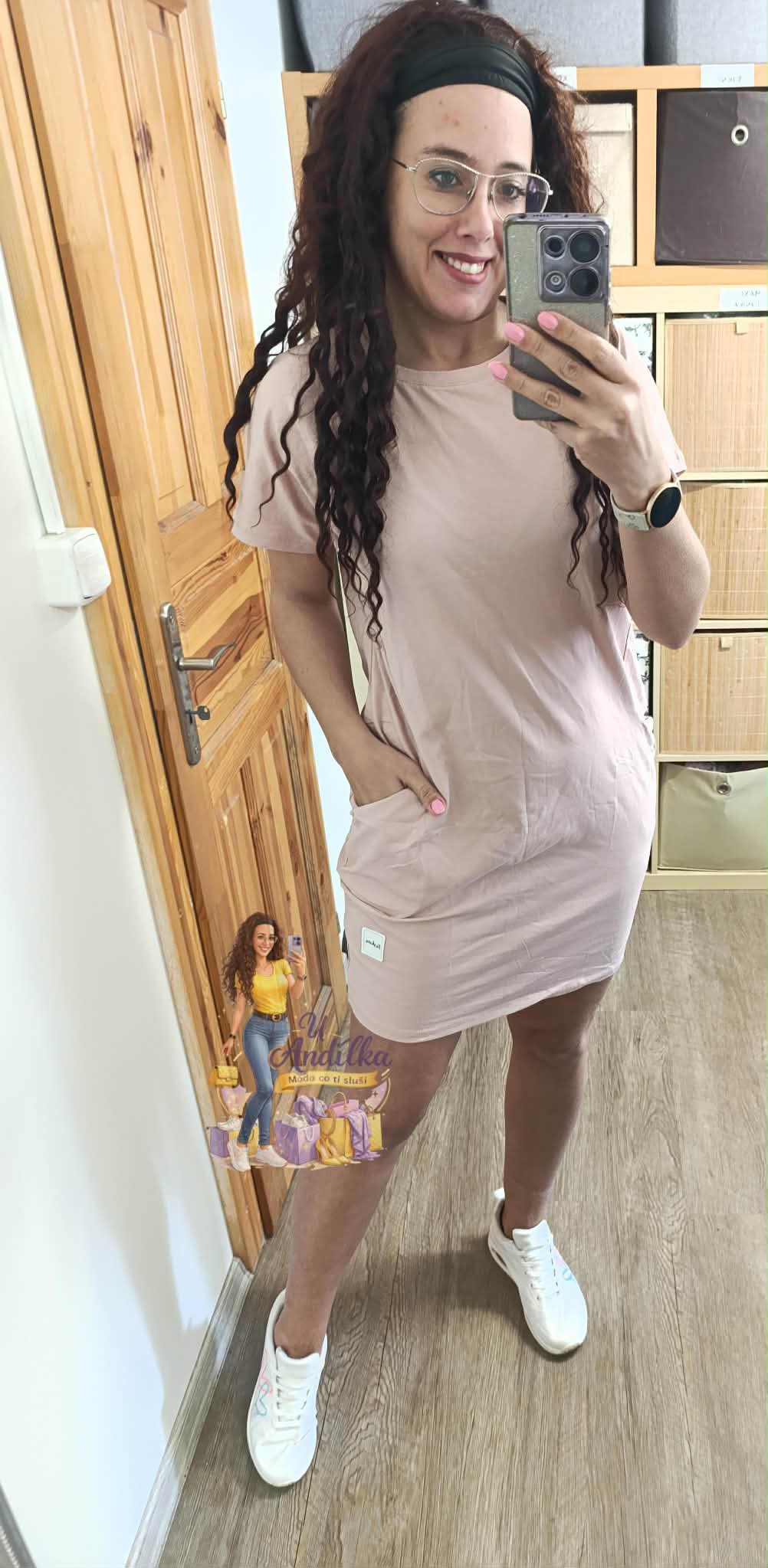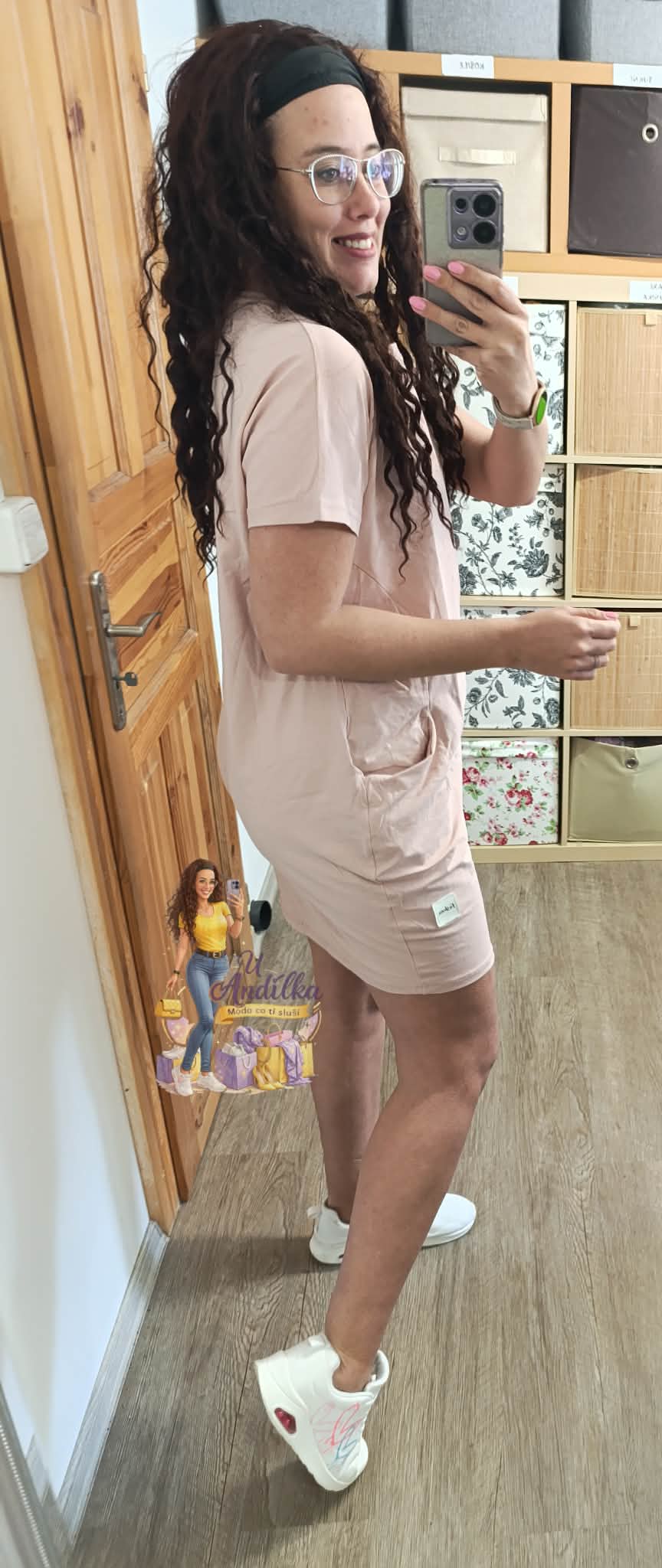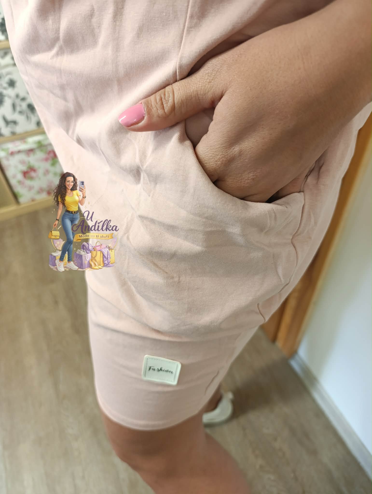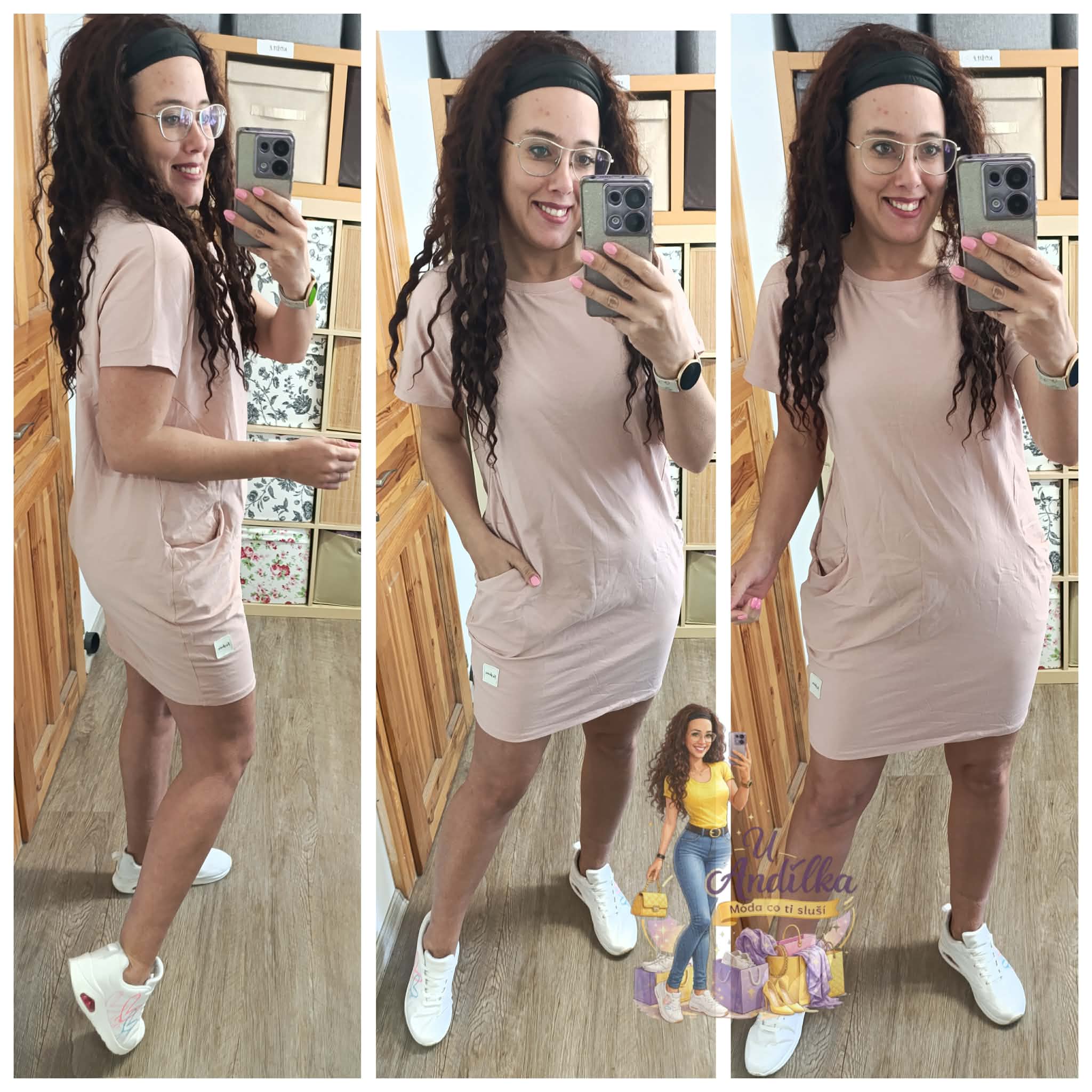 Pudrová šatovka s kapsami