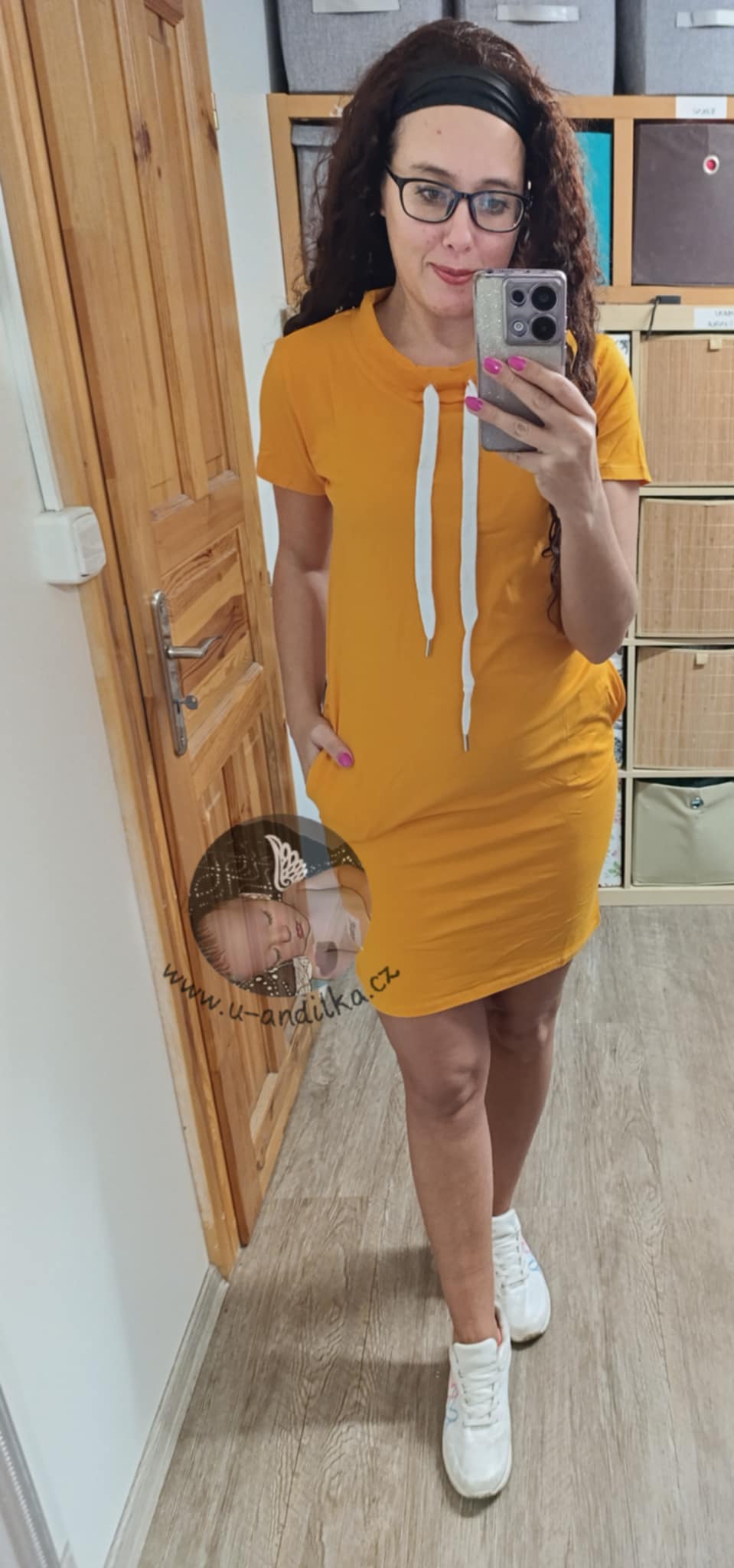 Super bavlněná šatovka - tunika s nášivkou a u krku na stažení Push Limit