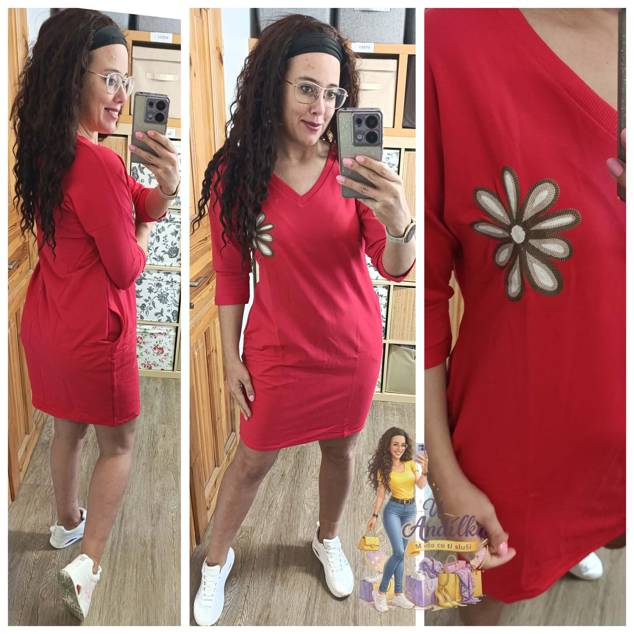 Do výstřihu V s vyšitým květem - jaro/leto