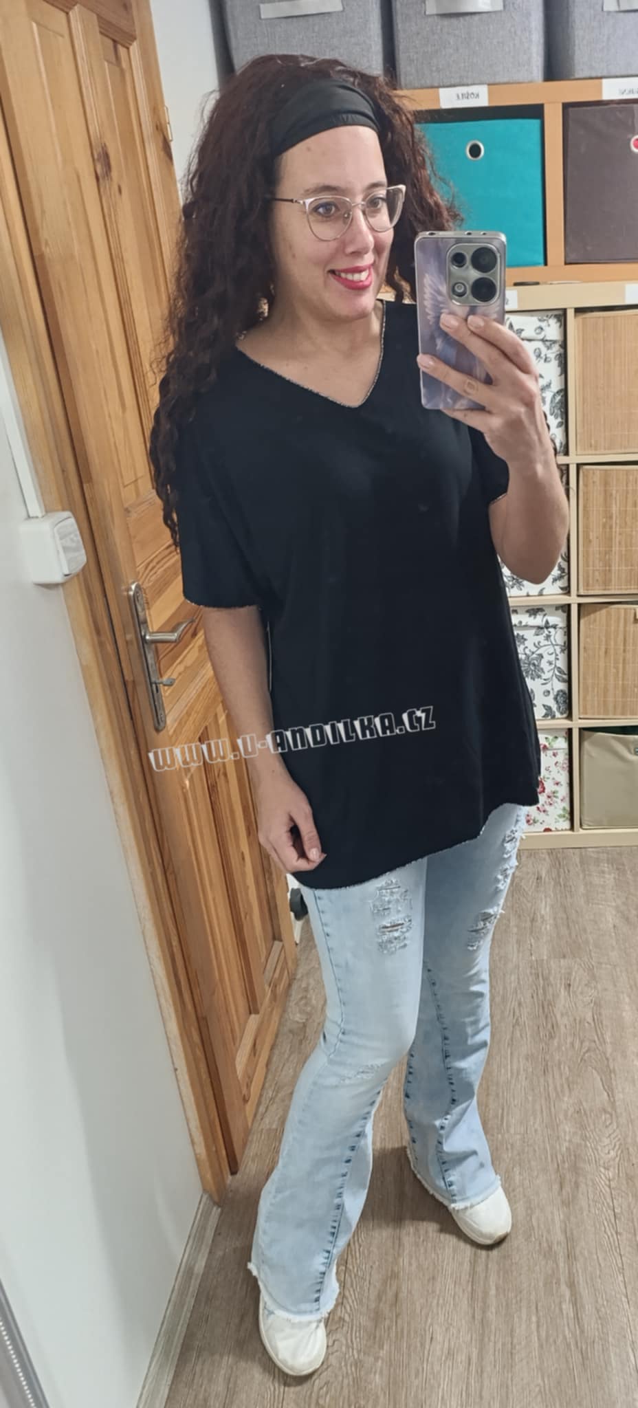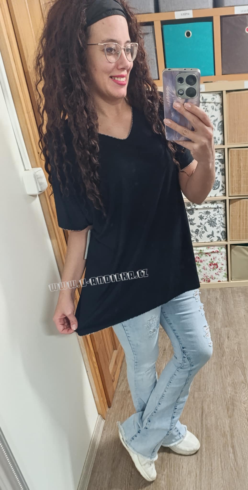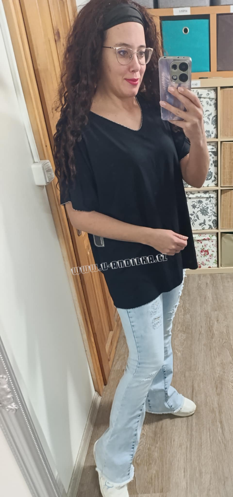 Úžasné triko s výstřihem do V, olemované stříbrnou nitkou