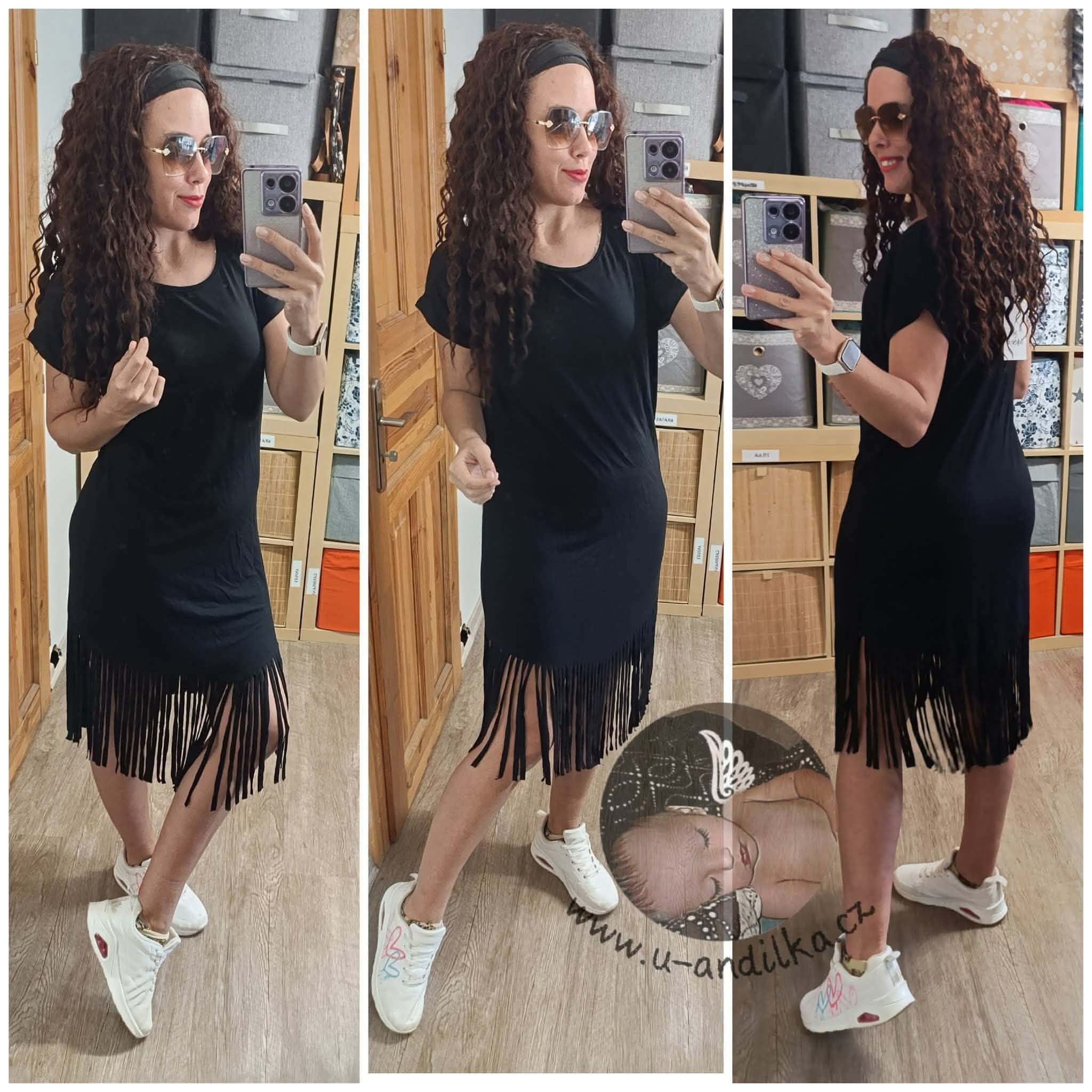 Úžasné šaty třásně Pohodlné, pružné Vel.UNI ( M-XL ) délka 82cm+25cm třásně , prsa 49-65cm x2